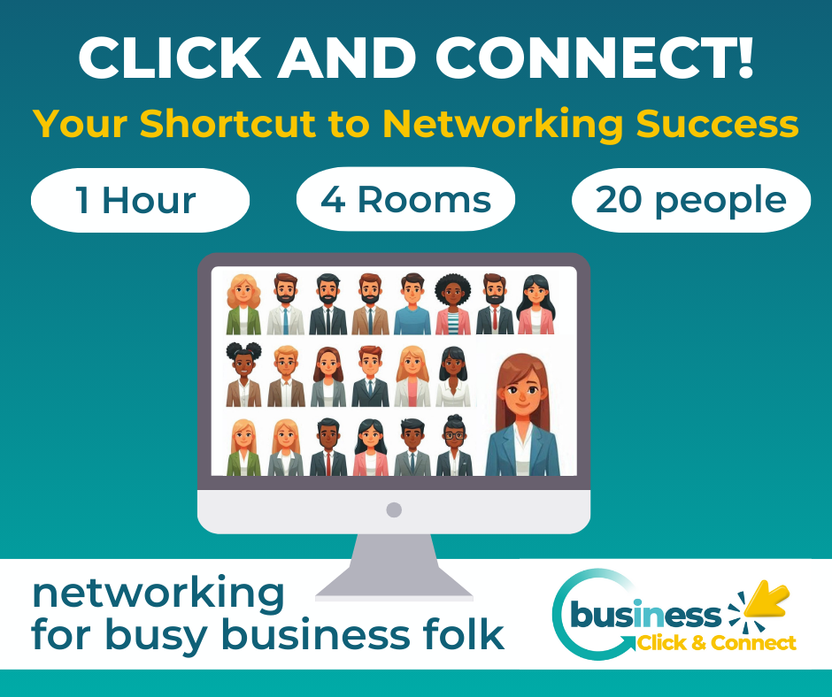 Join us for our Click and Connect online networking! It’s simple, it’s friendly, and it’s all about YOU!
